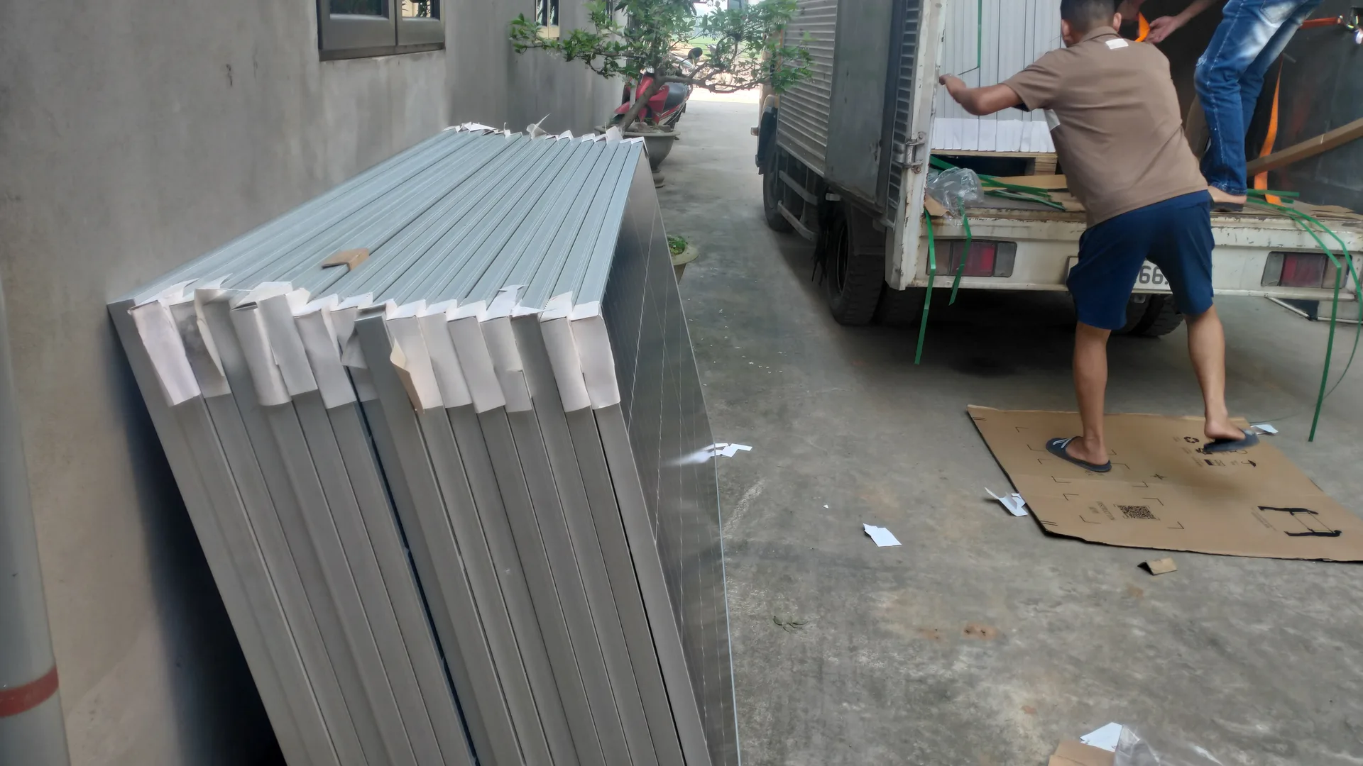 Tấm pin : Khách hàng sử dụng trước 6 tấm pin thương hiệu LONGi ( LR4-HBD-455M) công suất 455Wp, còn lại sẽ nâng cấp sau.
