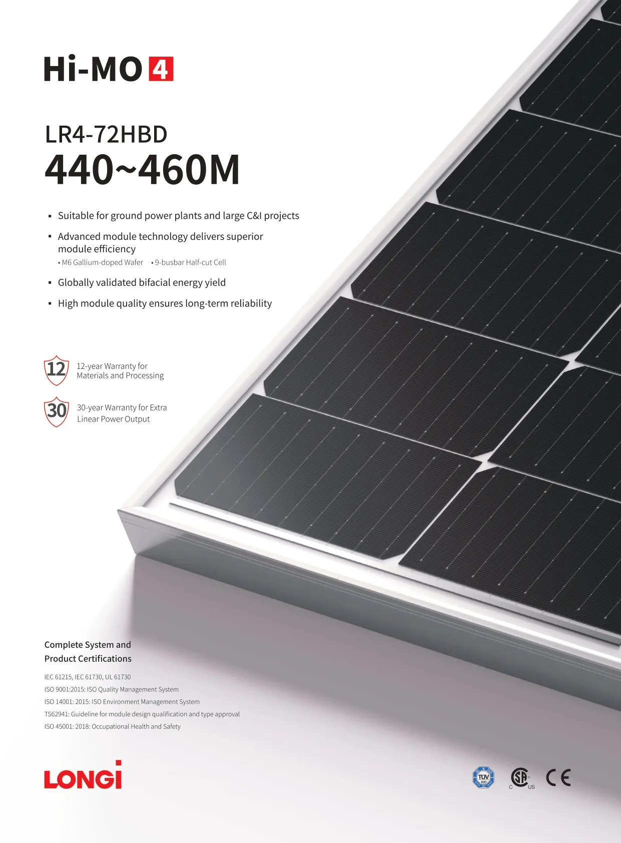Tấm pin mặt trời LONGi Solar 445Wp LR4-72HBD-445M