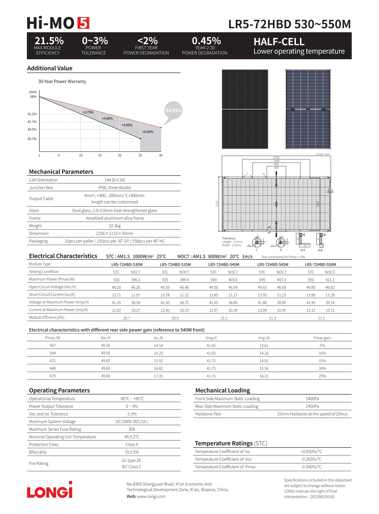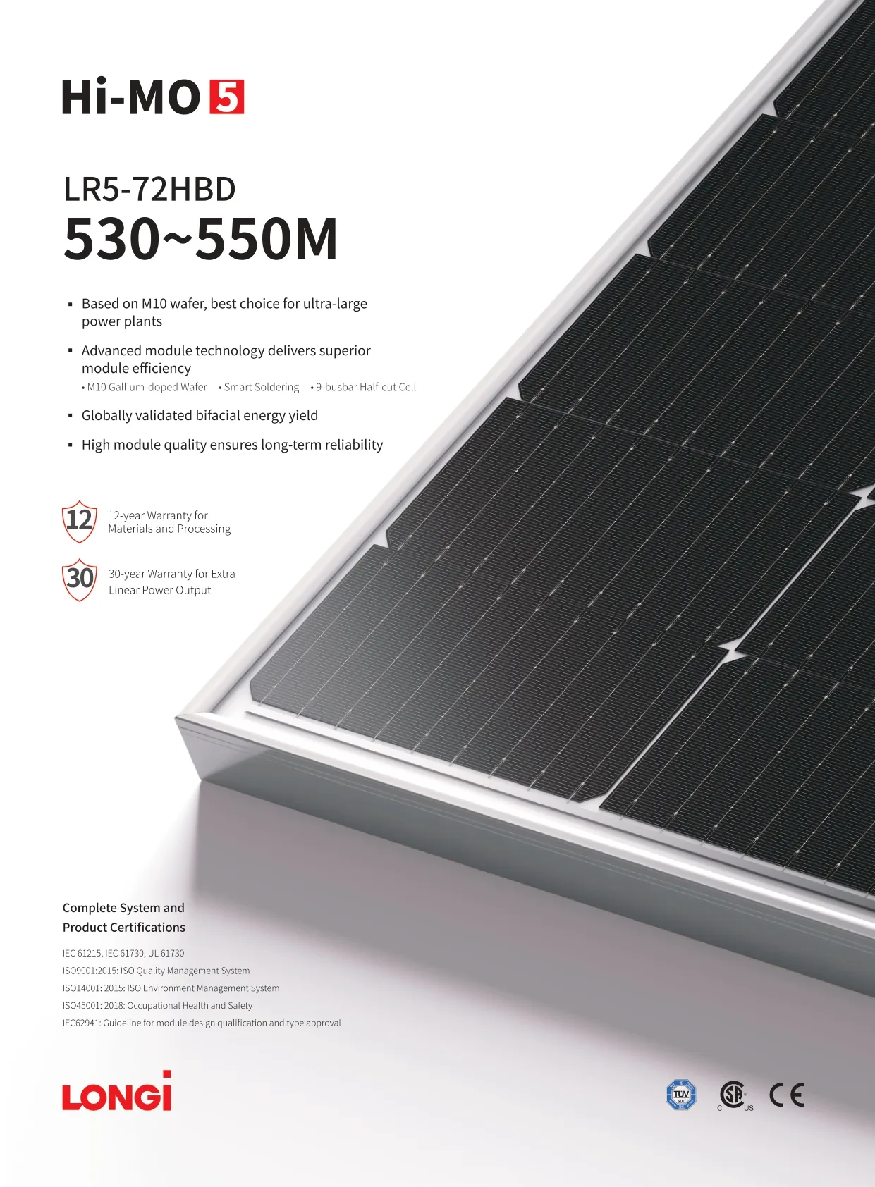 Tấm pin mặt trời LONGi 545W Model : LR5-72HBD-545M