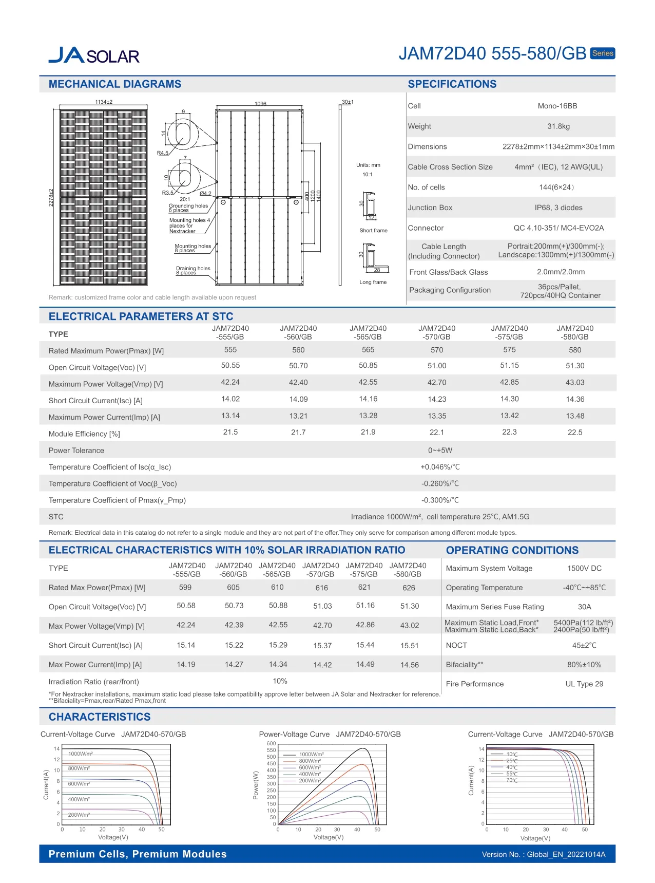 Tấm pin năng lượng mặt trời JA Solar 570 Wp JAM72D40-570/GB