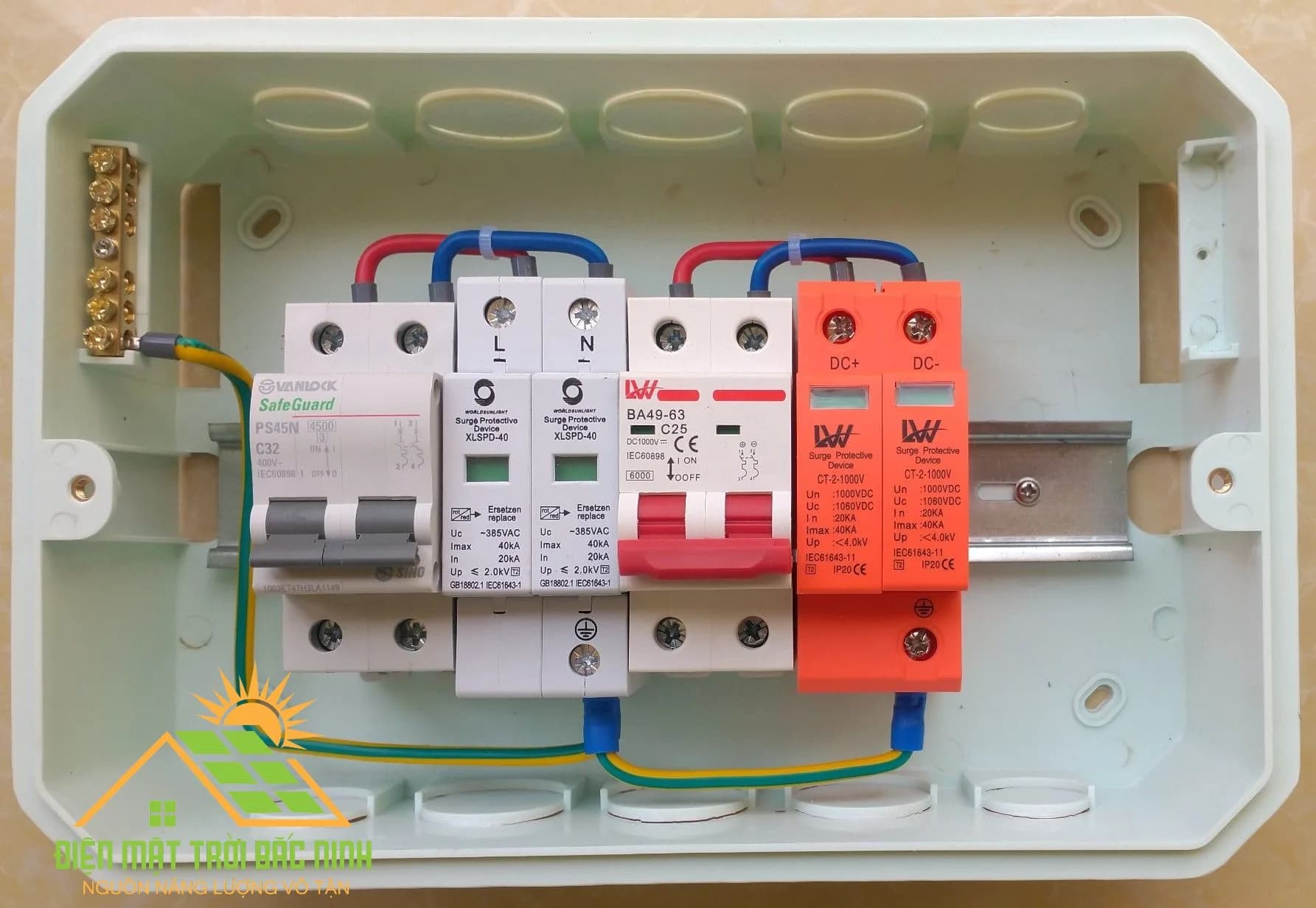 Tủ điện được thiết kế lắp đặt cho hệ thống năng lượng mặt trời hòa lưới bám tải có công suất từ 3 đến 6 KW. Đặc điểm nổi bật : Vỏ tủ sử dụng sản phẩm của thương hiệu SINO- VANLOCK có độ bền cao, chống cháy. Dây điện đạt chuẩn, có bấm Cos các tiếp điểm. Có hệ thống cắt sét, bảo vệ biến tần và tải khi trời có sấm sét. Có hệ thống dây tiếp địa và cọc tiếp địa riêng biệt giúp vận hành an toàn. Bảo hành 24 tháng.